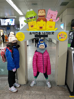 T-Money ini merupakan kartu transportasi yang dapat digunakan untuk membayar di berbagai toko, taksi, dan alat transportasi lainnya. T-Money ini kami beli saat kami datang di waktu yang lalu. Supaya lebih dapat bergerak cepat, papa dan Duo Lynns berhenti di dekat panggung yang penuh dengan dekorasi sementara saya menuju convenience store terdekat untuk mengurus T-Money. Berhubung kakak sudah harus membayar saat naik public transport, maka saya pun memberikan passport kakak agar T-Money kakak didaftarkan sebagai T-Money anak-anak. Tujuannya jelas, supaya biaya perjalanan lebih murah.